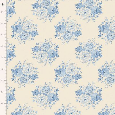 This is a beautiful blue and white fabric! Tilda Fabric's Sunday Brunch, designed by Norwegian designer Tone Finnanger, is a softly colored vintage collection, where she has dusted off and renewed a few old romantic floral Tilda patterns. These are combined with a Sunday Brunch motif depicting friends sharing a lovely, laid-back brunch in the garden. The color palette is gentle but with a dash of sour for freshness, with colors ranging from teal, green, soft greys and yellows to ginger, pinks, blues and sand.