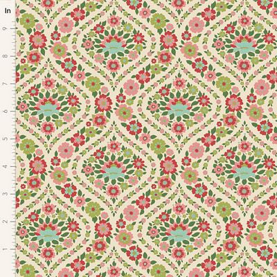 Tilda Fabric's Wallflower collection is designed by Norwegian designer Tone Finnanger. "Wallflower is an ornamental collection loosely inspired by and my somewhat romantic take on design styles popular in the 1960s and 70s." The collection has two distinctive color stories. One is sweet and fresh with vintage reds, greens and pinks with hints of blue and sour yellow. The other is more of a nod to the 1960s and 70s, with caramel, blue, ginger, ochre and thistle tones. The sweet Bellflower blenders complement the main collection perfectly.