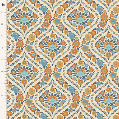 Tilda Fabric's Wallflower collection is designed by Norwegian designer Tone Finnanger. "Wallflower is an ornamental collection loosely inspired by and my somewhat romantic take on design styles popular in the 1960s and 70s." The collection has two distinctive color stories. One is sweet and fresh with vintage reds, greens and pinks with hints of blue and sour yellow. The other is more of a nod to the 1960s and 70s, with caramel, blue, ginger, ochre and thistle tones. The sweet Bellflower blenders complement the main collection perfectly.
